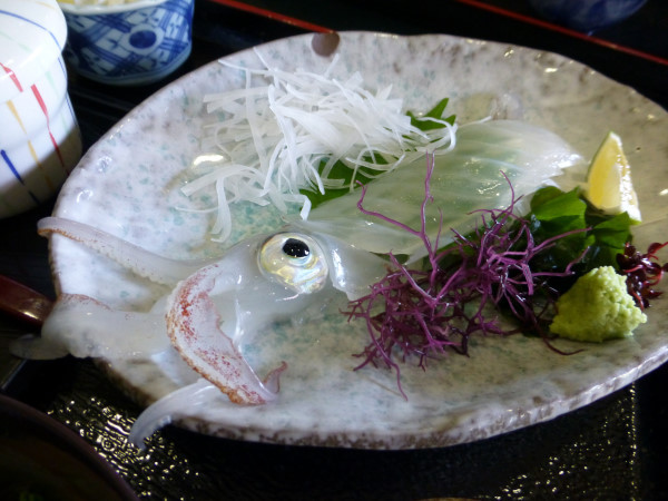 普通の定食を食べることが多いんですが、今回はこちらの名物の活イカ定食を食べました。