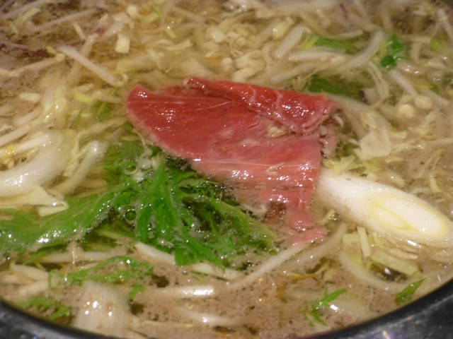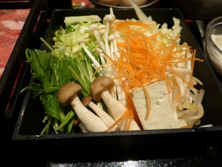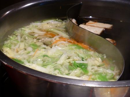 お野菜をグツグツ煮て、お肉をしゃぶしゃぶしていただきます。