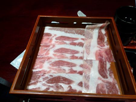 お出汁が2種類あるので、特選牛はすき焼き風、麦豚はしゃぶしゃぶで頂きます。