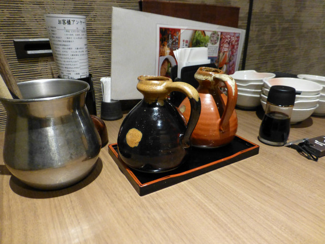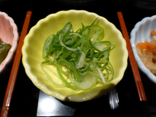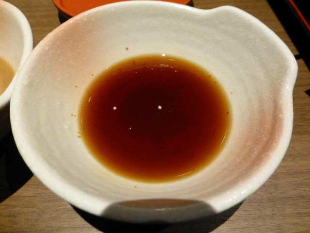 たれはゴマとポン酢です。薬味はネギともみじおろし。