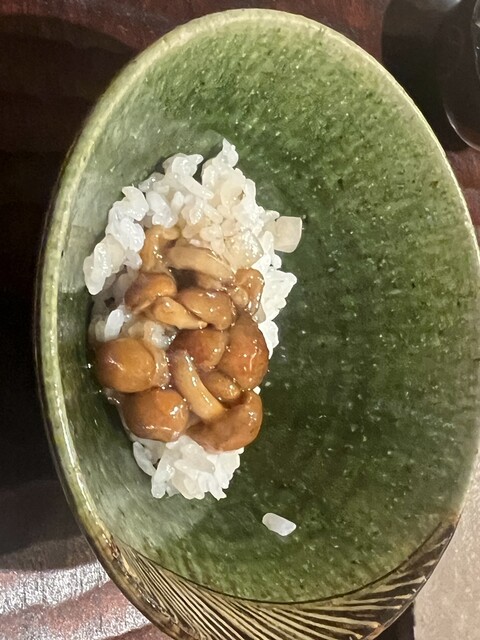 終盤には、炭と桜チップで炊き上げる土鍋ご飯が登場。これがまた圧巻!香ばしい香りにまず癒され、一口食べれば粒の立ったご飯にしっかりと薪の香りが移っていて、それだけでも贅沢な味です!さらにこのご飯をベースに、いくつかのバリエーションで小盛りの“追いご飯”が続き、最後まで楽しませてくれます!!