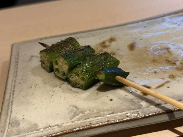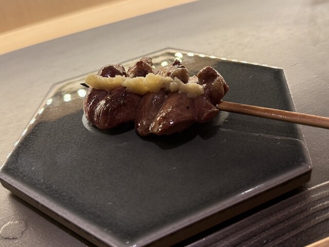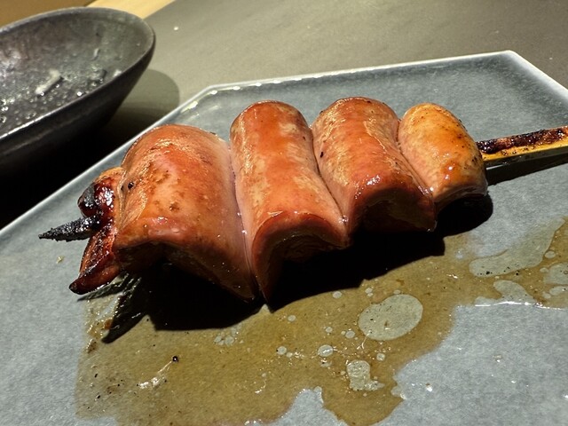 中でも印象に残った串を挙げると、希少部位の「ちょうちん」はぷちっと弾ける濃厚な卵黄のコクが格別でしたし、うずらの卵の串も香ばしくて旨味たっぷりでした。定番の皮(かわ)はカリっと感を残しながら余分な脂っぽさを感じさせず、ハツも新鮮でジューシーでした。どの串も素材の良さと丁寧な仕事ぶりが際立っており、一本ごとに感動を味わえました。また、串ものの合間にいただける一品料理もユニークで且つ上品さもあり、串以外の料理にも妥協のないことが伝わってきます!