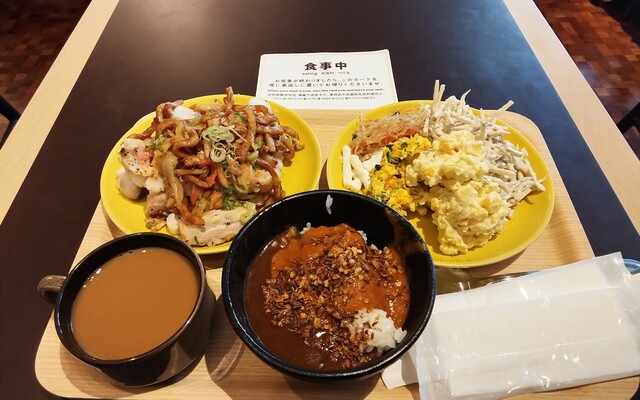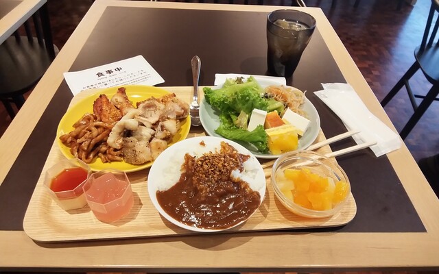黒豆が出てました。魚とカレーが美味い。ドレッシングもいけます。
