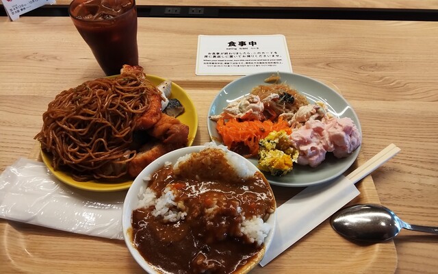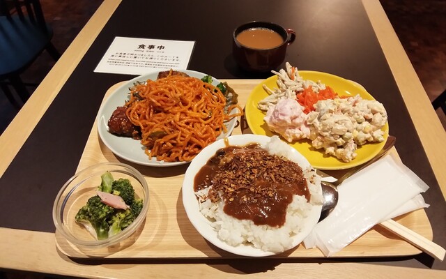 魚料理ないけど、ハンバーグ、鶏、焼きそば、麻婆ありで、