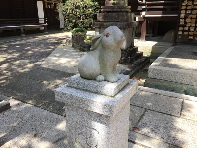 本殿前にある可愛い阿形吽形のうさぎで