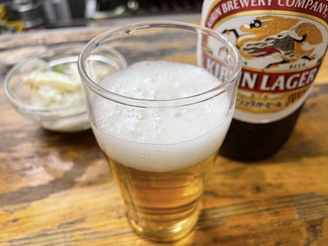 まずはビール、キリンラガー瓶があって嬉しい。