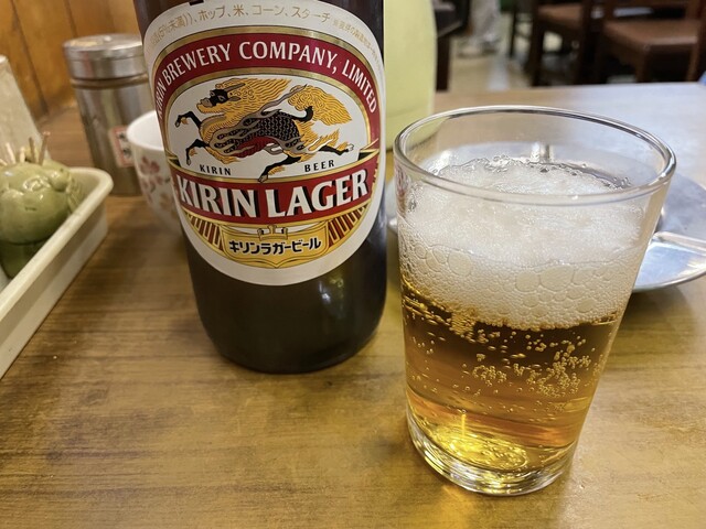 まずビール、キリンラガー瓶があって嬉しい。