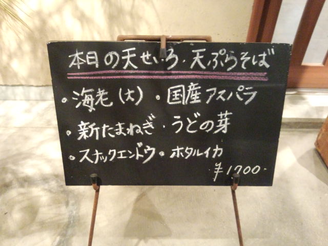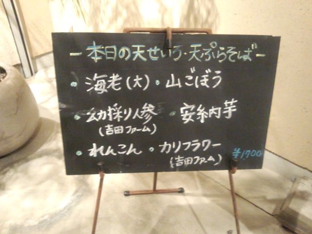 外にはこちらのお店自慢の天ぷらを使った、そばメニューの本日の天ぷら内容が書かれています。