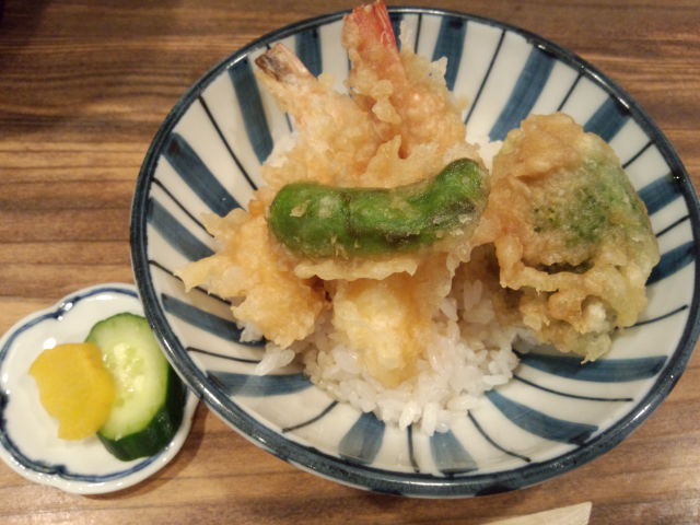小と言うだけあって、本当に御茶碗に軽く御飯が盛ってあり、天ぷらがのっています。