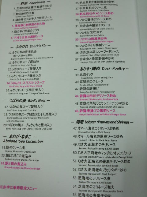 こちらのコースはオーダーバイキングスタイルで、王朝を代表するような料理が季節食材や高級食材も使用しつつ全120種類の中から食べ放題です。