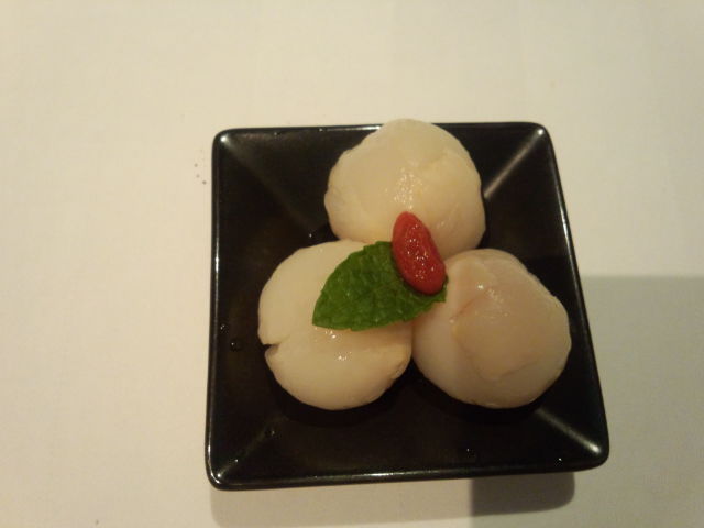 19.ライチー 皮も種も取ってもらってあり、食べやすいです。料理人さんのひと手間が嬉しいですね。ライチそのものも甘く美味しいです。良いライチなんでしょうね。