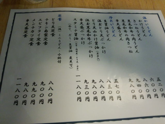 うどんと定食メニュー