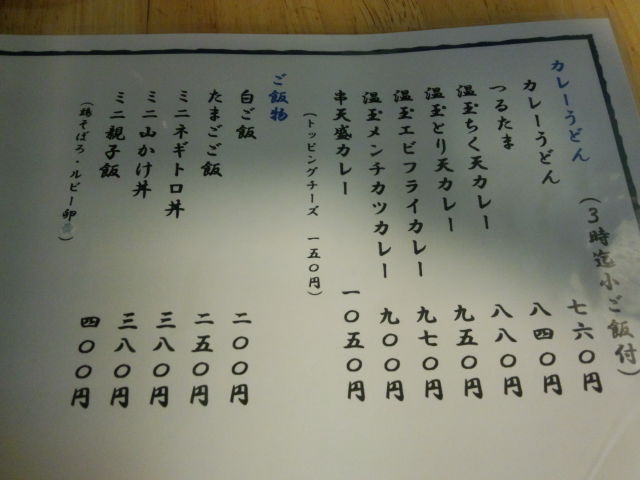 カレーうどんのメニュー