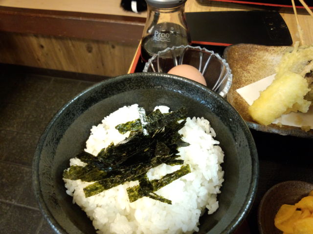 今回は前回の温玉が美味しかったのでこちらの玉子を食べたくて、たまごごはん(250円)も頂きました。
