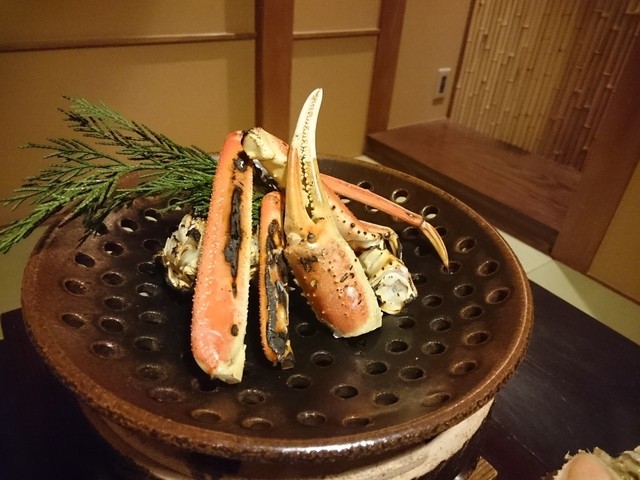 焼きかにも身が大きく、ホクホクです。そのまま何もつけなくてかにの旨みだけ味わって頂きました。