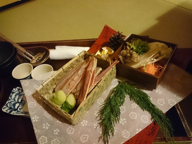 夕食は立春の頃だった為松葉ガニがメインです。そこに前菜数種と鮑、牛肉などが加わった豪華絢爛なものです。