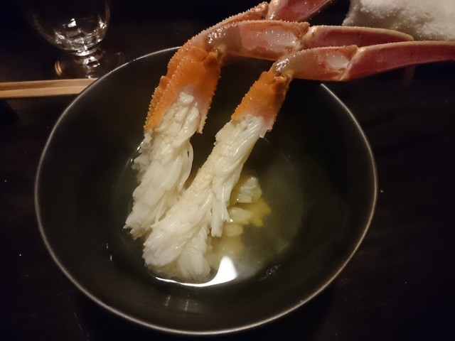 かにの心臓なるものを料理長自らが目の前で調理してくださいます。かに味噌や身も勿論出汁とともに頂き大変美味しいです。