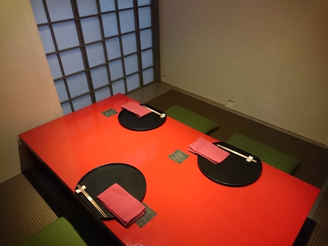 赤いテーブルの座敷個室