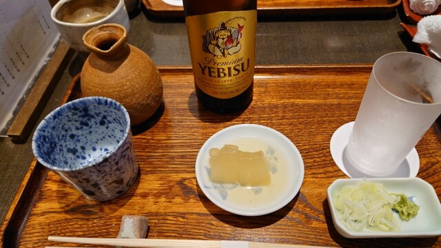 蕎麦を注文してその前に色々美味しそうな季節のつまみメニューが有るのでこれらをビール(エビスビール)と共に頂くことにしました。