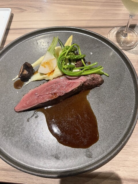 メインは鴨のロースト、シェリービネガーソース。お肉の火通り完璧。柔らかで旨味溢れます。