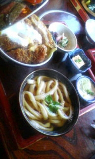 「カツ丼」「うどん(温)」「漬物」「豆腐」が付いていました。