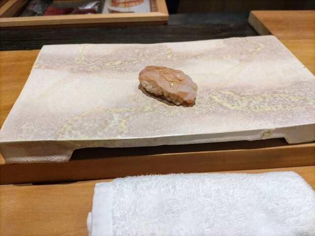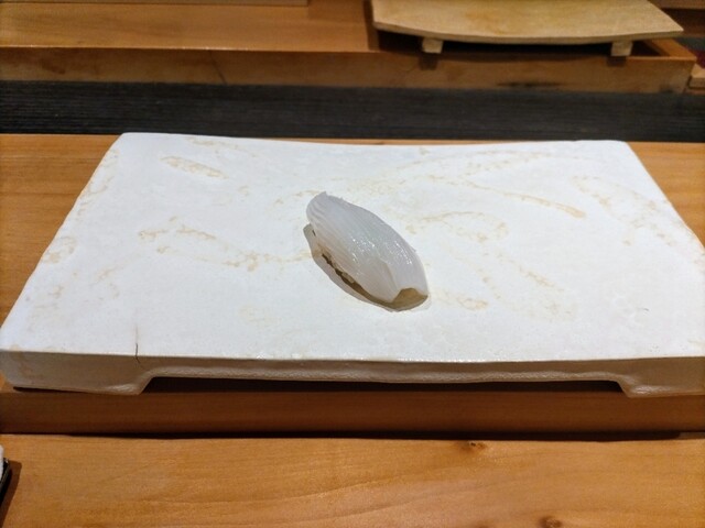 飲まないのでここからにぎり。横須賀の槍烏賊♪ シャリは山形産ササニシキに赤酢合わせ♪