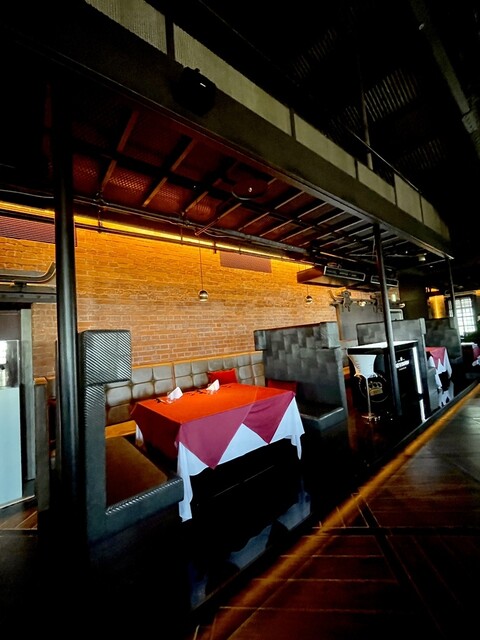 壁側にはVIP席(のような席)、奥にはカウンターもあります。ほの暗い照明に赤いテーブルクロスが