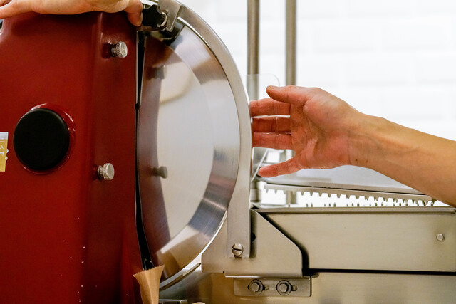 毎日、目で手で切る前に入念な調整をします。