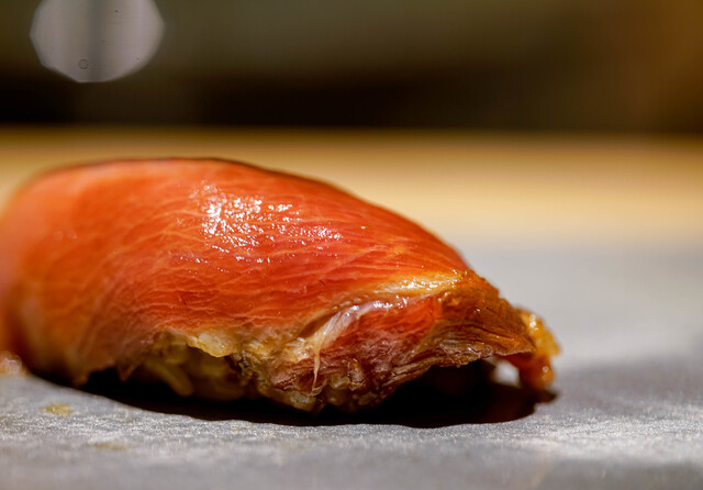 こはだの後は、色が見えそうなくらいの香りと酸味と脂の乗りと味の濃さに目を見張る大トロ。