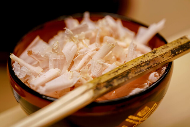 たくさんの鰹節とご飯とお供。