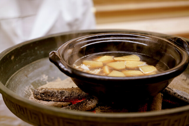 あこう鯛の分厚い切り身を澄んだ出汁に浸して。出汁の旨さに共鳴するような白身の良さを感じる。