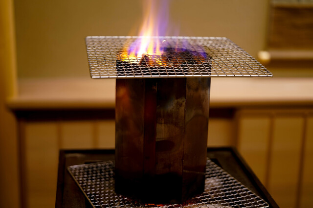 良い香りがすると思ったら炭火で淡路の黒鮑を焼き上げます。