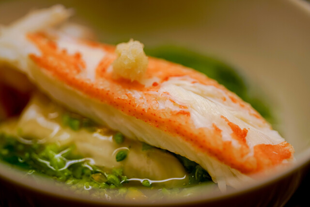 舌に乗ると感じる程度の静やかな酸味は蟹の甘味を最大限に出してくれる。