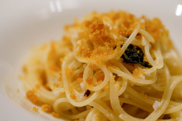 神経〆した蛸と大葉とからすみのパスタをさらりと。