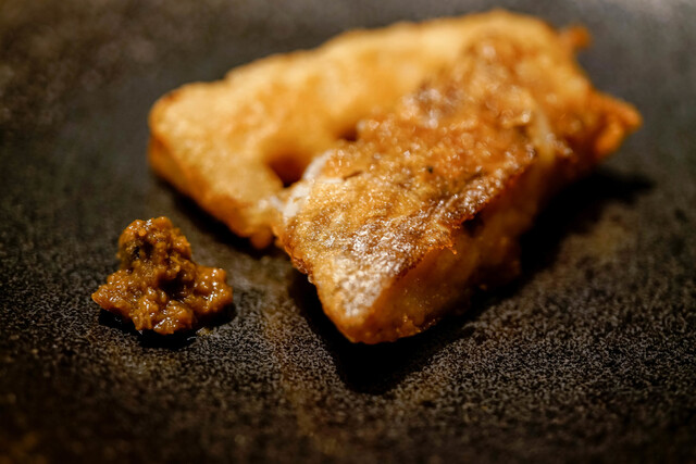 蕗の薹味噌の柔かな苦味とビールを含めた衣はサクッと心地良い音が鳴る。