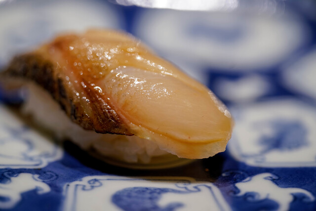 カマスの香ばしさと酸味が程良い。それにしても一定の手で決まる綺麗な握り。