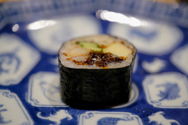 更にツメの甘さがやや抑えめになったふわふわ穴子と〆太巻きの合わさった甘さでフィナーレを迎えます。