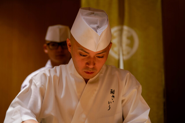全ての鮨を握る時間は、鋭く見つめる視線に変わります。