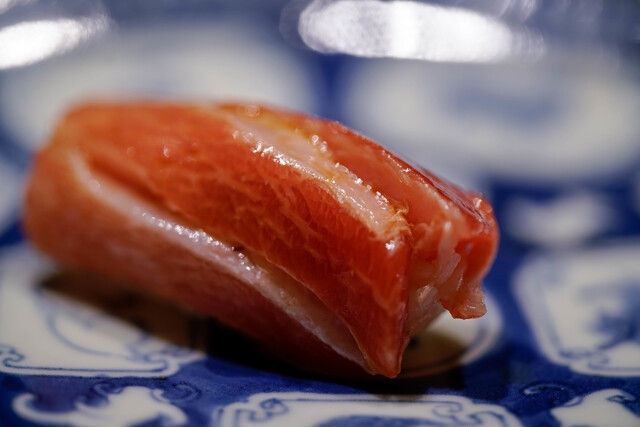 コリッと少し弾力を残した白身の魅力を存分に味わえる鯛握りから始まります。