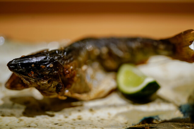 ほんの少し火を入れた桜鱒の身が美しくしっとり、皮はパリパリの極上品。