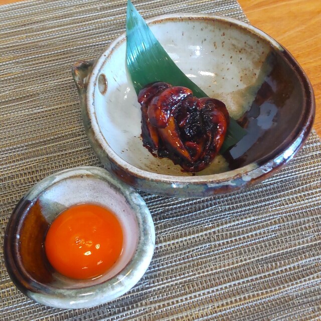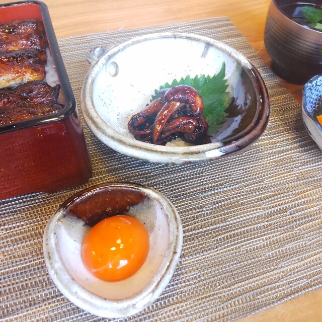 一緒に付いてくる玉子の濃厚な黄身を絡めたり、山椒をかけたり、色々の食べ方を楽しめます。