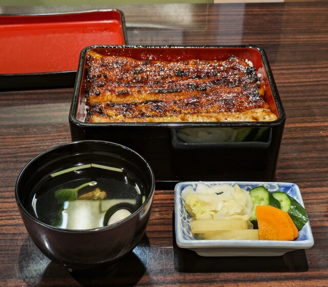 今回、当店で頂いたのは「うな重」と「鰻の白焼き(短冊)」と「肝吸い」です。