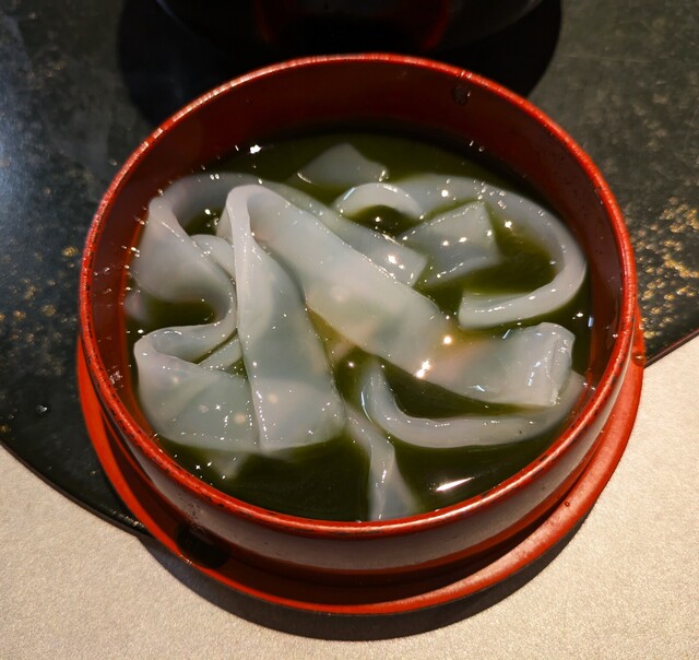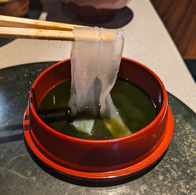 先ず「くずきり」を蜜に付けて食べますが、淡い甘さを感じるて素晴らしい美味しさです。