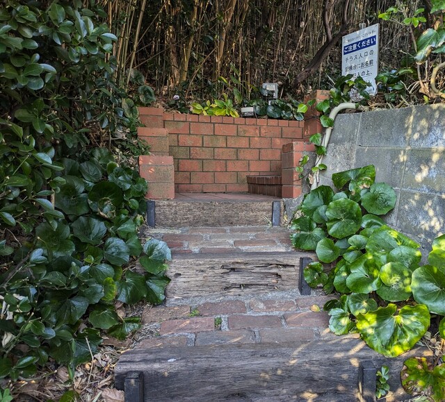 道路を右に曲がって山の方の階段を登って行くと、当店「アマルフィイ デラ セーラ」に着きます。