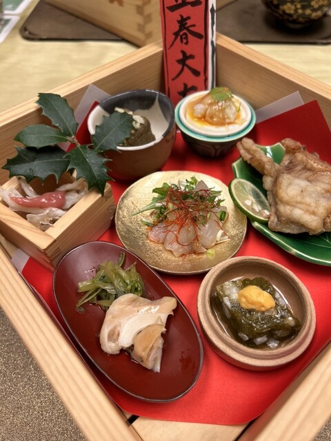 八寸はいつもいろいろなお料理が少しずついただけて見た目も美しくしいです。お作りはマグロとトラフグ。