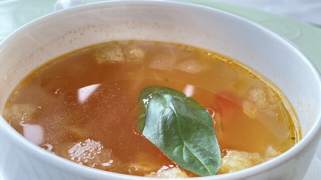 バジル香る暖かいトマトスープ、アツアツのアサリのドリア。今日、生まれて初めてとうもろこしのヒゲを食べました。