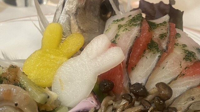 オードブルのゆで卵うさぎの耳に掛かっていたペッパーの中にシナモンの香りを感じた。