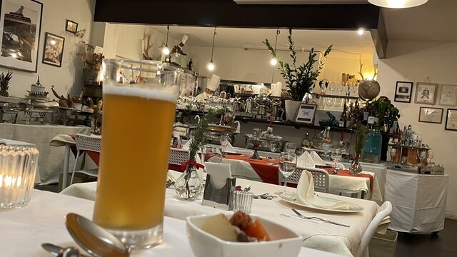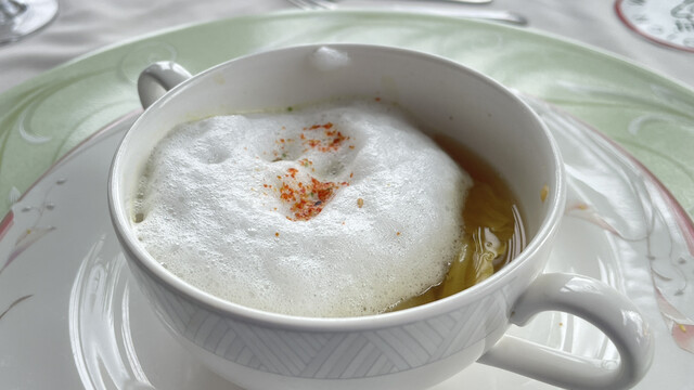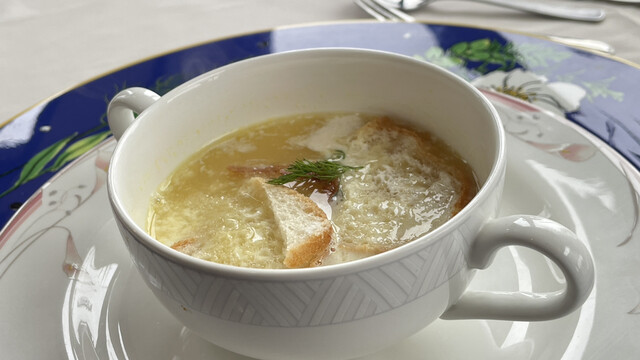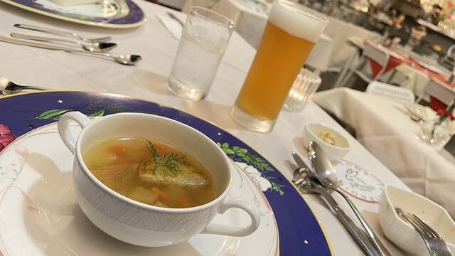 一月上旬の価格改定でコースのお得感が薄れたので注文の仕方を見直す。もともとの単品の価格の合計よりコース価格が不自然に安かったわけで、価格改定されても単品の価格はそれほど変わっていない。という事で、オードブルとスープとメインの組み合わせで2050円。これなら激変緩和と言うものだ^_^。