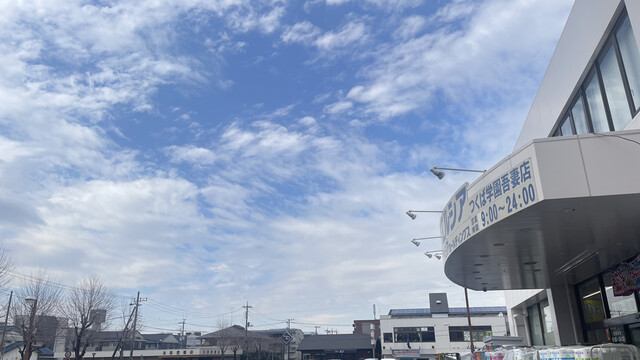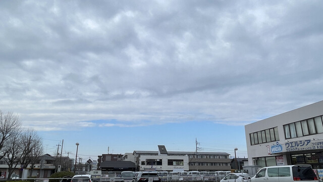 食べ終えて出て観ると、ジプロインからは見えない北の空は晴れて春めいた水色の窓が筑波山上空に。耳は冷たいけど久しぶりに散歩する気分になる。ビタミンD自家製産だー。厚着して出て来てよかった^_^。