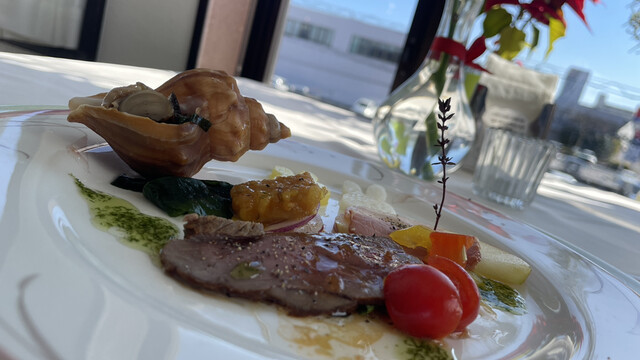 窓際の席では特に、青空の日には直射日光がくっきりした陰影を料理に作り、曇り空の日には柔らかい間接照明的な光が料理を繊細に浮かび上がらせる。季節の太陽光が照らす季節の野菜の彩りを愛でながら食べる。自分の行きつけの店ではそんなのはここだけだ。